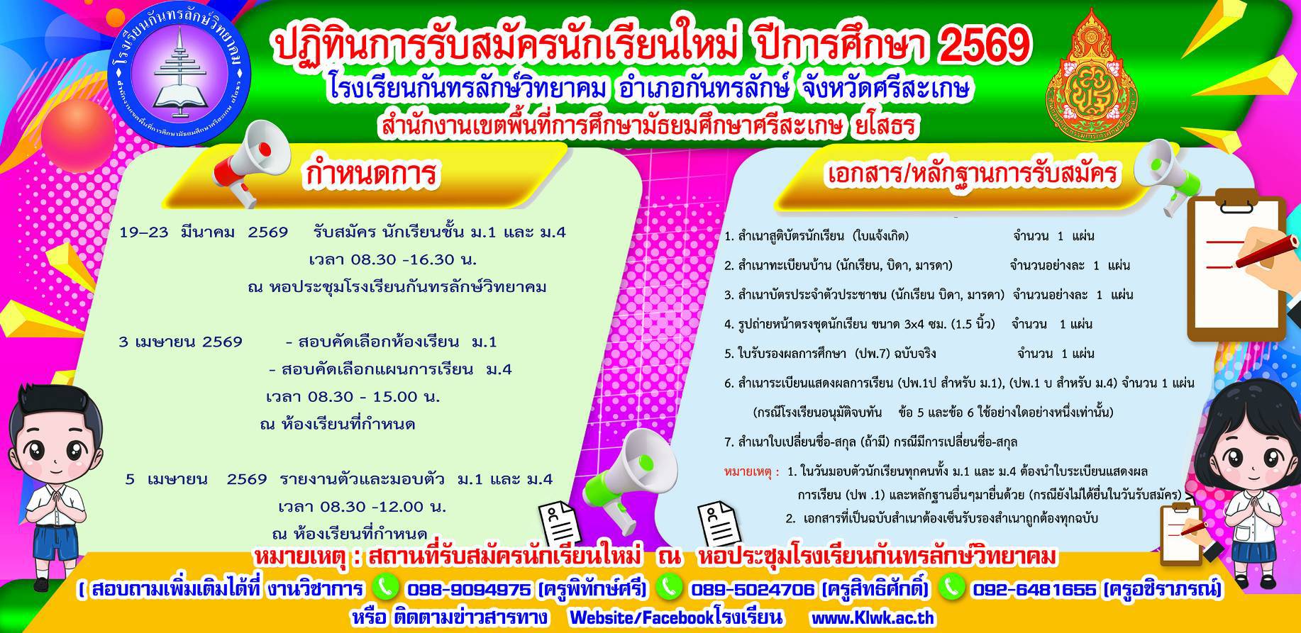 ยินดีต้อนรับเข้าสู่เว็บไซต์ โรงเรียนกันทรลักษ์วิทยาคมค่ะ...