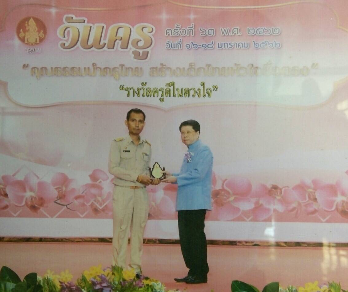 รับรางวัลเป็นครูที่ลด ละเลิก เหล้า เบียร์ ดำรงตน เป็นแบบอย่างที่ดีต่อนักเรียน