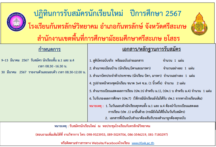 รับสมัครนักเรียนใหม่ ปีการศึกษา 2567