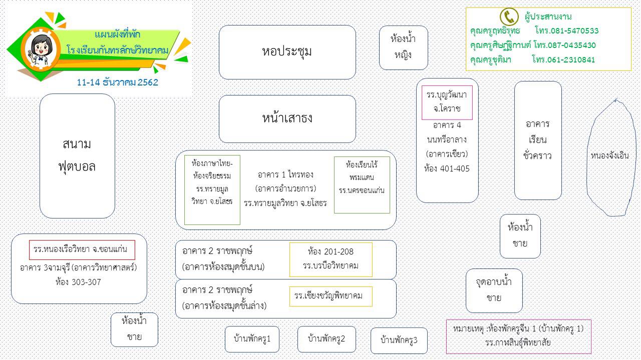 แจ้งประชาสัมพันธ์แผนผัง และเวบไซต์โรงเรียนที่จะเข้าพักงานศิลปหัตกรรมนักเรียนครั้งที่ 69