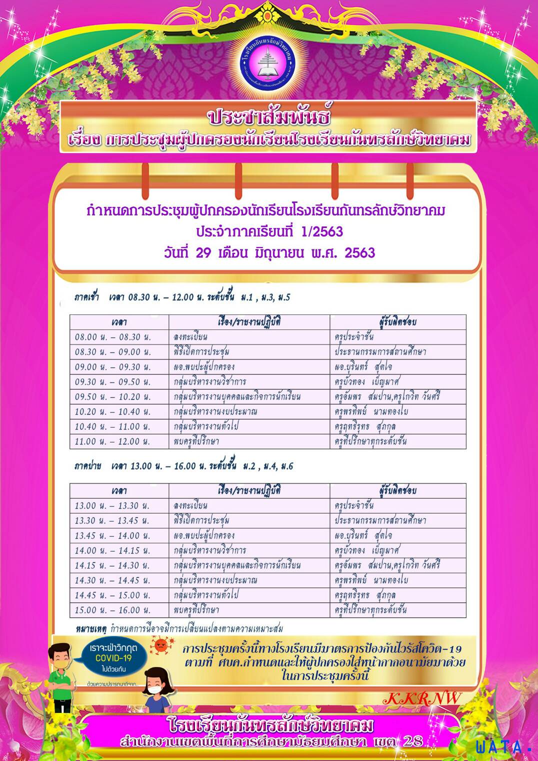 การประชุมผู้ปกครอง ภาคเรียนที่ 1 ปีการศึกษา 2563