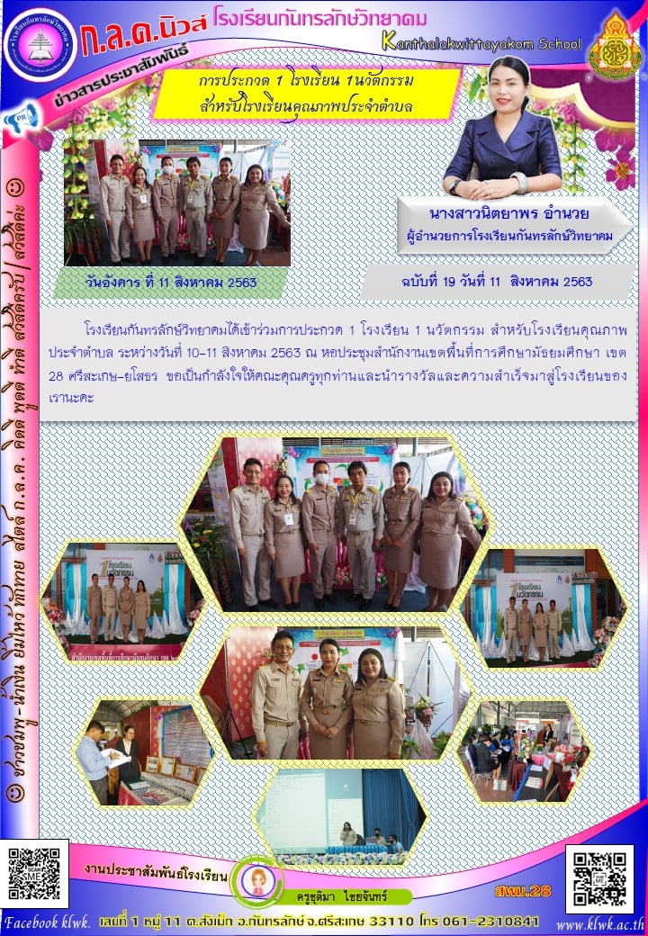 วันอังคาร ที่ 11 สิงหาคม 2563 โรงเรียนกันทรลักษ์วิทยคมได้เข้าร่วมการประกวด 1 โรงเรียน 1 นวัตกรรม สำหรับโรงเรียนคุณภาพประจำตำบล ระหว่างวันที่ 10-11 สิงหาคม 2563 ณ หอประชุมสำนักงานเขตพื้นที่การศึกษามัธยมศึกษา เขต 28 ศรีสะเกษ-ยโสธร ขอป็นกำลังใจให้คณะคุณครูทุกท่านและนำรางวัลและความสำเร็จมาสู่โรงเรียนของเรานะคะ
