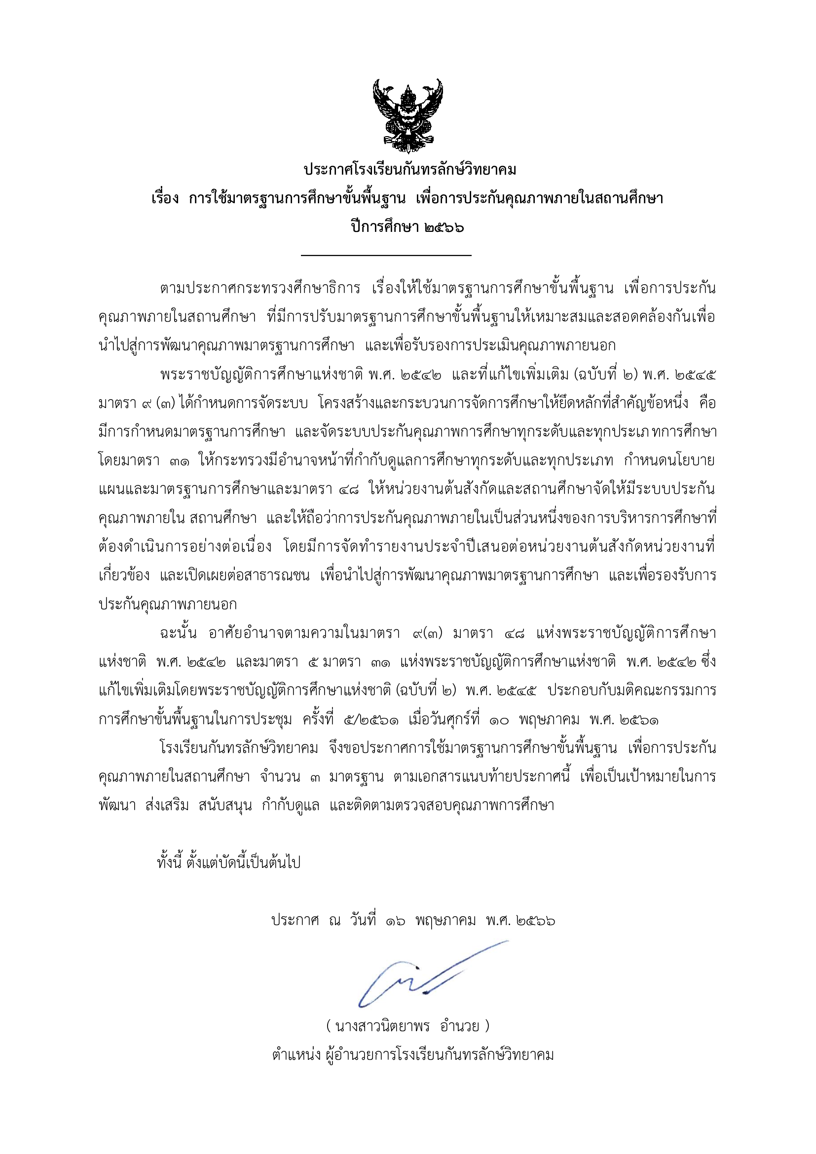 ประกาศค่ามาตรฐานการศึกษาโรงเรียนกันทรลักษ์วิทยาคม ประจำปี 2566