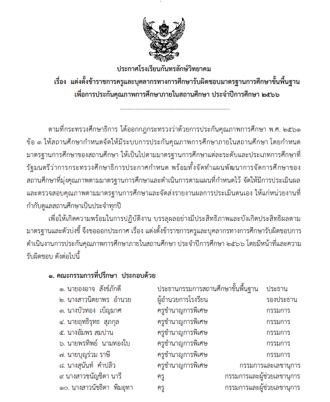 ประกาศแต่งตั้งข้าราชการครูและบุคลากรทางการศึกษารับผิดชอบมาตรฐานการศึกษาขั้นพื้นฐานประจำปี2566