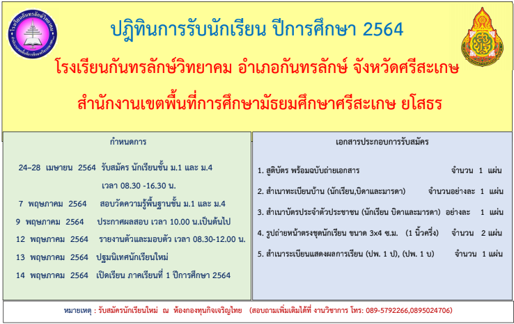 ประกา่ศรับสมัครนักเรียน ปีการศึกษา 2564