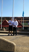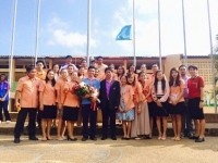 นายเทวิน ชินบุตร ผู้อำนวยการโรงเรียน คณะครูและนักเรียน ร่วมต้อนรับและชื่นชมยินดีกับนายวิโรจน์ ยศศิริ