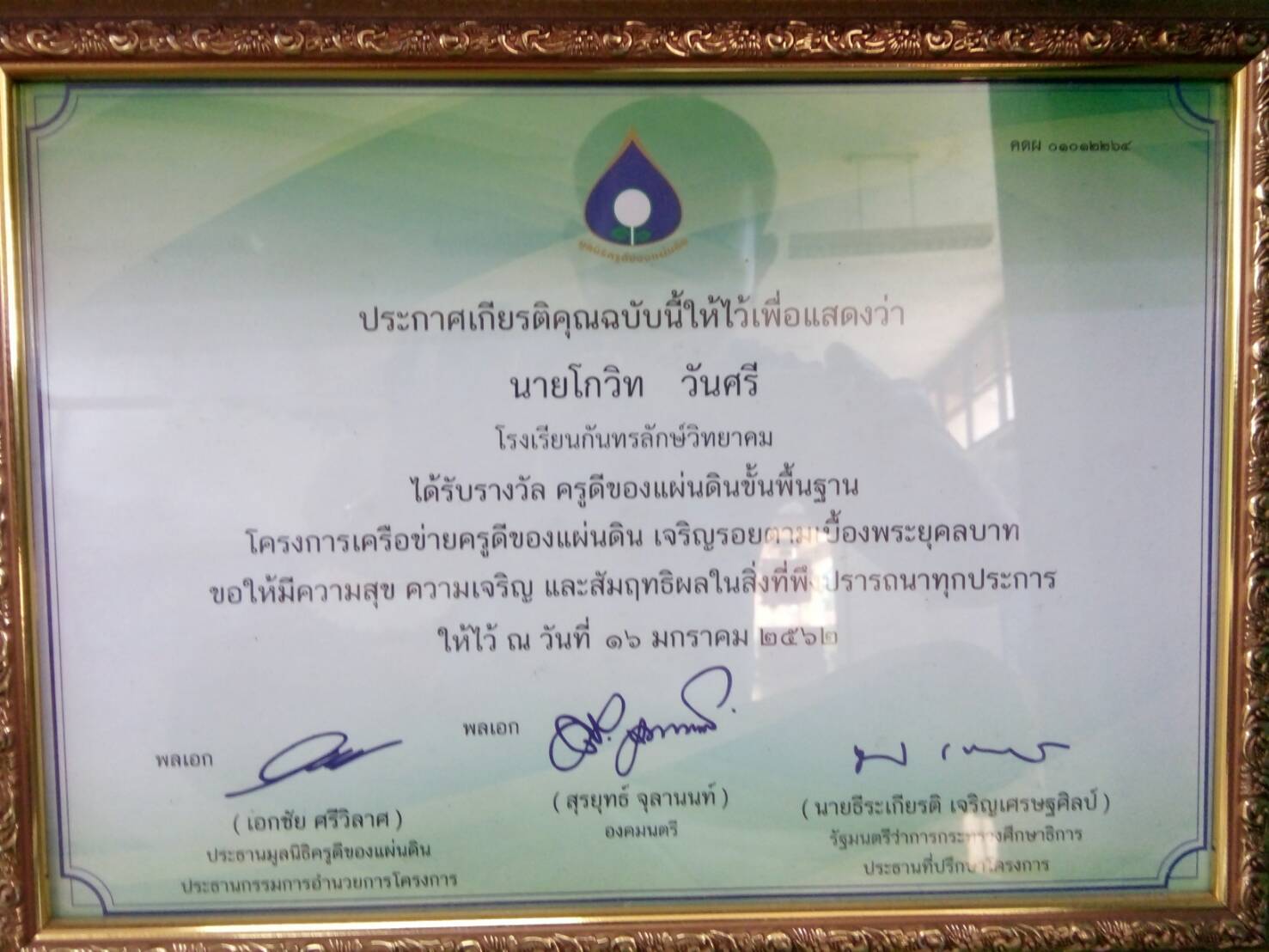 รางวัลครูดีศรี ก.ล.ค. ปี 61-62