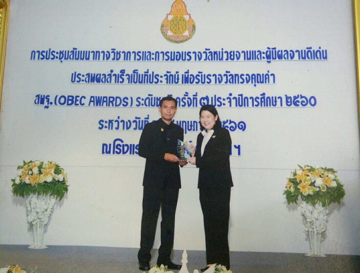 รางวัลรองชนะเลิศ เหรียญทอง OBEC AWARDS ระดับชาติ. ปี 2561